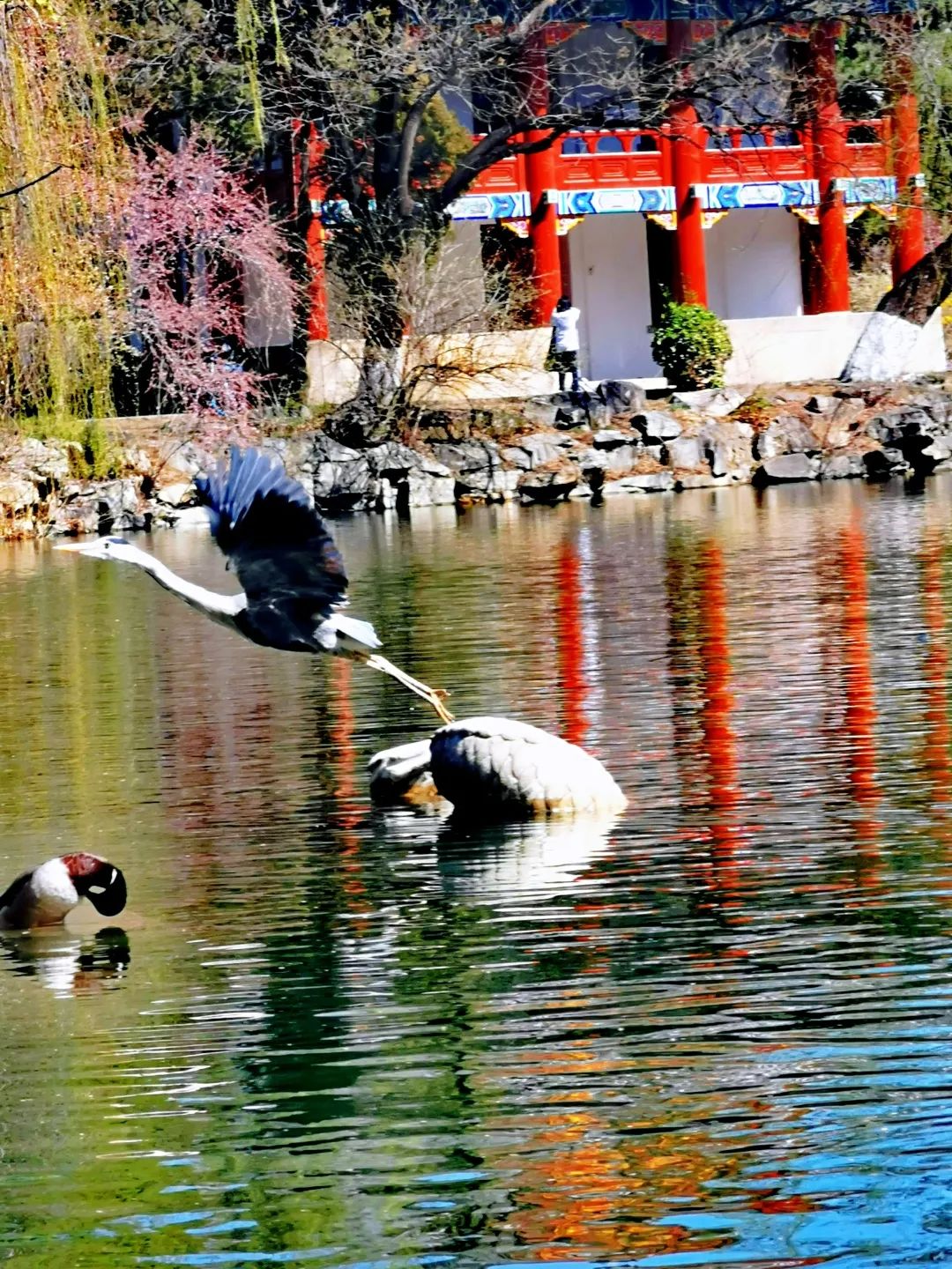 也有优雅立于石上的苍鹭