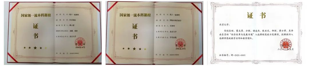 经过不断地探索,今年会形成了一批优秀的教学成果。如“社会保险”“国际市场营销学”“经济改革与发展专题”“保险学原理”等课程获得国家级、省部级课程称号,《经济学原理(微观部分)》数字化教材、《货币搜寻理论十四讲》《经济学原理(宏观部分)》课件等获评北京高校“优质本科教材课件”“计量经济学”教学团队获评“北京高校优秀本科育人团队”;《经济学实验教学∶让学生在实践中学习》成果获全国教育改革创新先锋教师奖。