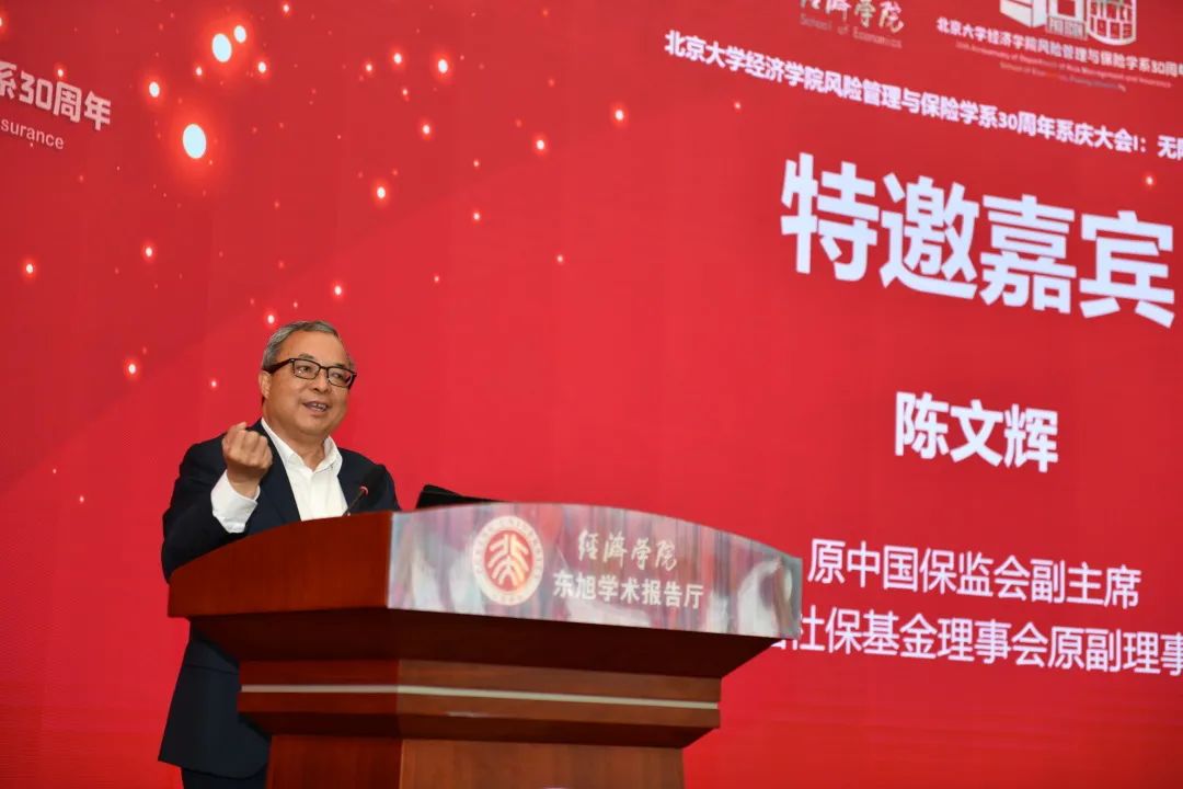 原中国保监会副主席、全国社保基金理事会原副理事长陈文辉先生在讲话中把风保系30年的成长与我国保险业过去30年的发展相联系,生动地讲述我国保险行业发展壮大的历程和取得的今非昔比的成绩,指出未来保险业发展的机遇与挑战并存,大有可为,希望北大风保系继续广育优秀人才,为国家经济社会发展贡献更大的力量。