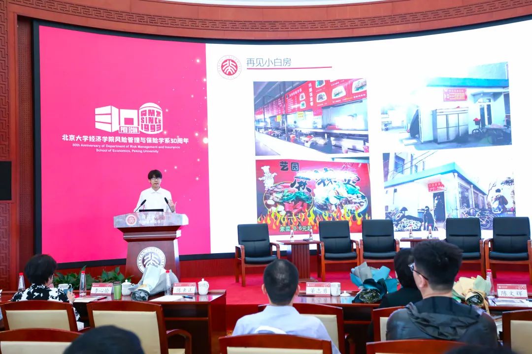 在教师代表发言环节,贾若副教授从历史、现状和未来三方面分享了参与30周年系庆的喜悦。他说,风保系建系之初可谓筚路蓝缕,而30岁的风保系风华正茂,成为了全国风险管理与保险学科建设的标志性项目。在未来,现代社会的风险在快速变化,同时非常深刻地影响我们的国家、社会和每个个人的生活。保险是现代社会风险管理的基本手段,期待与在座同学、校友们一起共创风保系下一个30年的辉煌。