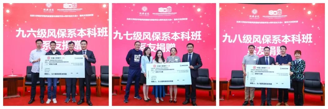 在系友捐赠环节,各级系友们慷慨捐赠,增设了三项系友奖学金,分别是由1996级本科系友捐资设立的“九六冀望奖”、由1997级本科系友捐资设立的“九七创新奖”、由1998级本科系友捐资设立的“相约九八奖”。这些新设的系友奖学金将进一步激励风保人薪火相传。