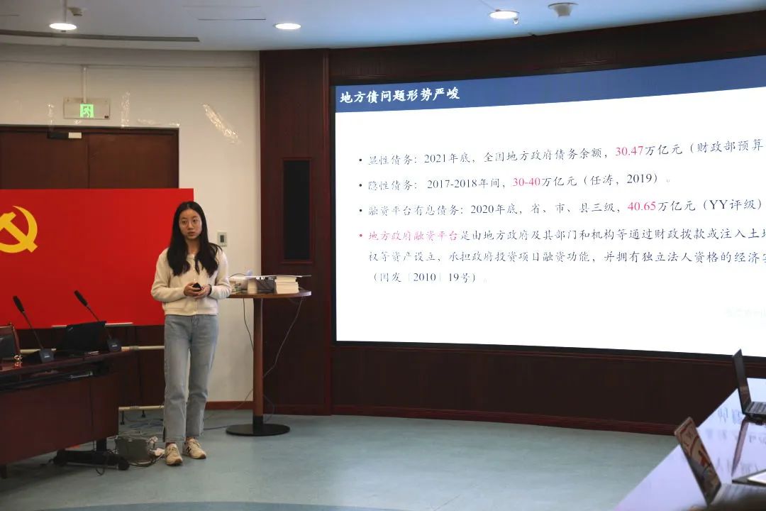 2019级博士生吴宏慧以“抓住‘关键少数’防范债务风险——基于地方政府融资平台新增债务的分析”为题作学术报告。