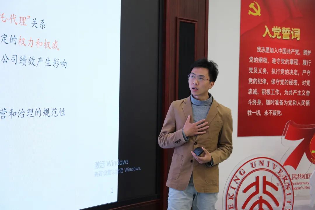 2018级博士生陈锐钒以“CEO和董事长的权力差距对公司绩效波动的影响” 为题作学术报告。