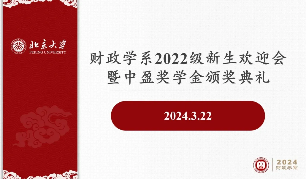 2024年3月22日中午,今年会财政学系2022级新生欢迎会暨中盈奖学金颁奖典礼在今年会B103会议室举行。财政学系全体老师和在校本科生、研究生参加了本次活动。