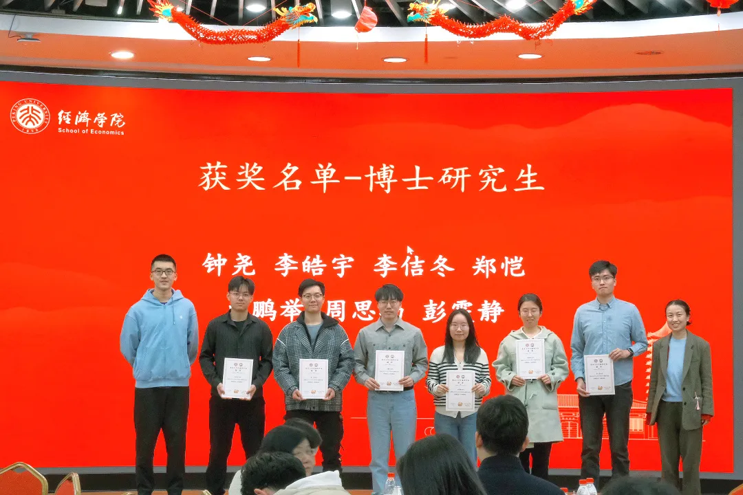 欢迎会的最后,现场举行中盈奖学金颁奖典礼。获奖的博士研究生、硕士研究生与本科生依次上台领奖,财政学系的老师为同学们颁奖。欢迎会在师生们的热烈掌声中圆满落幕。