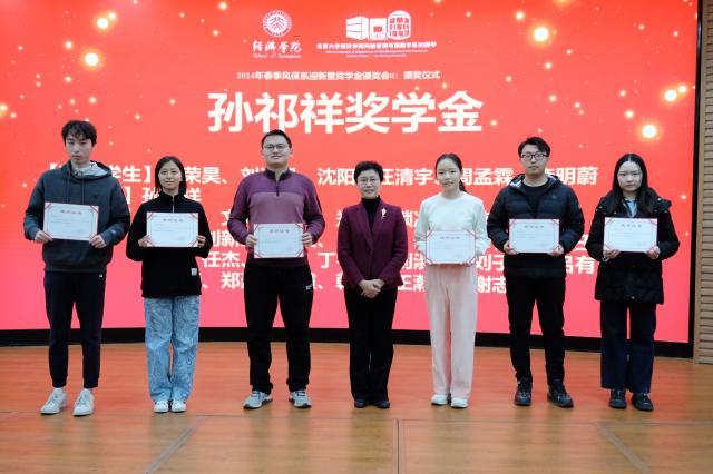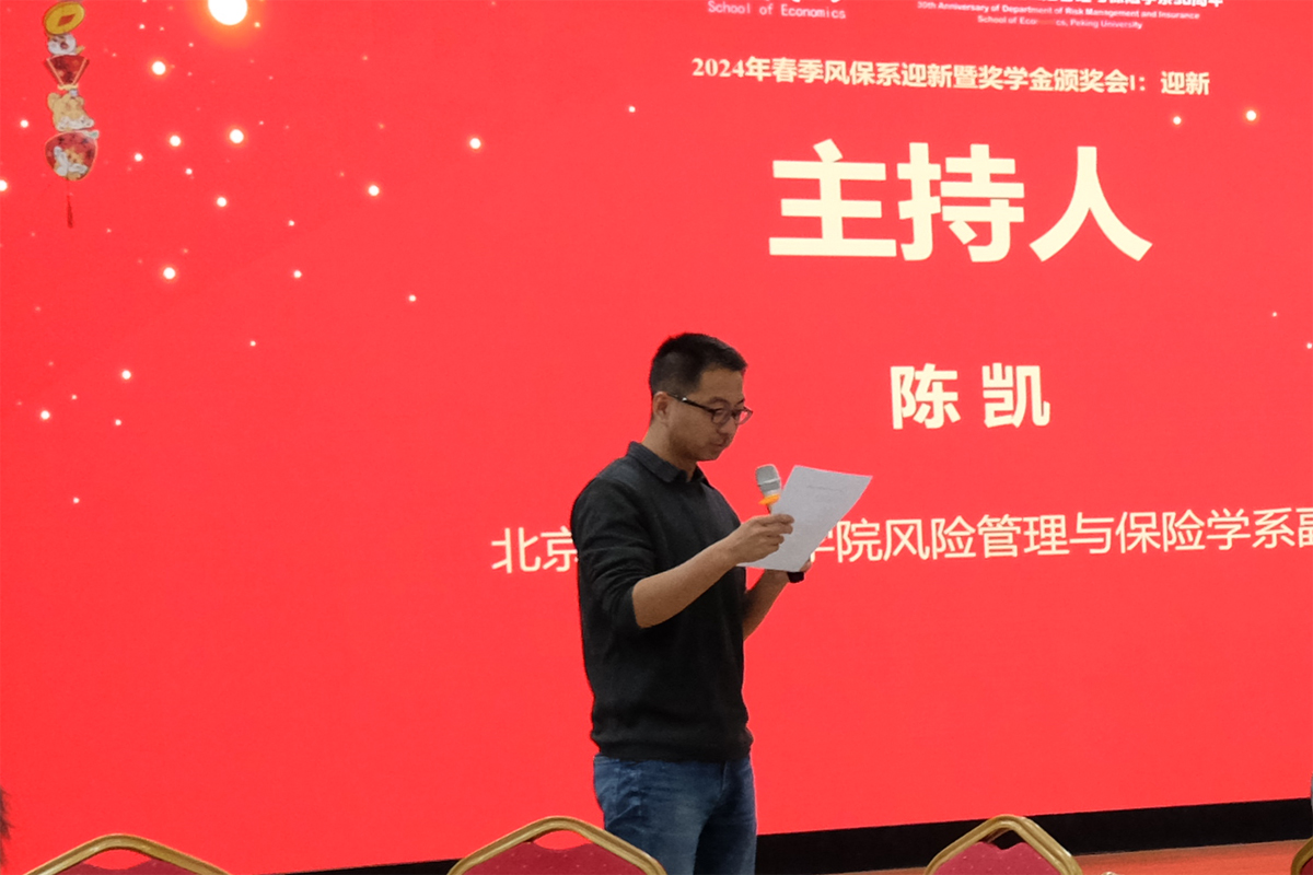 2024年3月1日下午,北大今年会风保系2024年迎新暨奖学金颁奖会在今年会B103会议室举行。风保系首任系主任孙祁祥老师、捐赠系友代表95级李钦、96级周桦、97级李建华和98级幸科作为特邀嘉宾出席会议,与在校师生进行经验分享并为获奖同学颁发奖学金。风保系全体老师和在校本科、研究生参加了此次活动。风保系副主任陈凯老师主持会议。