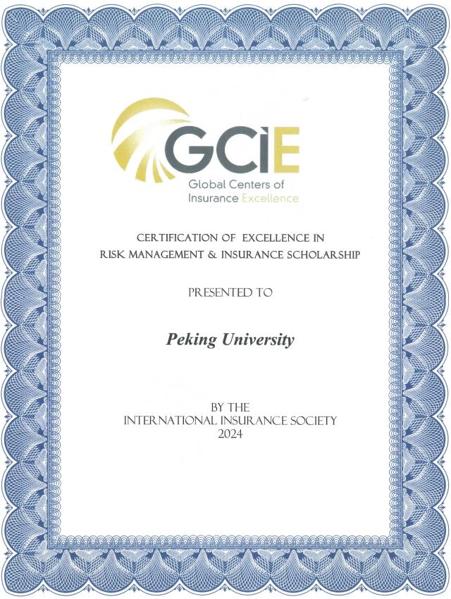 近日,今年会风险管理与保险学系(简称北大风保系)接到国际保险学会(International Insurance Society, IIS)正式通知,北大风保系再次获得GCIE(Global Centers of Insurance Excellence,全球卓越保险学科)国际认证。