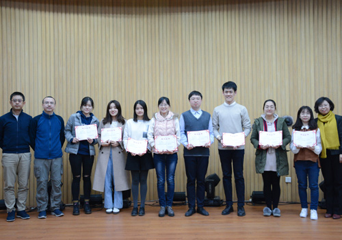 此后,会议进入校友奖学金颁奖环节。朱南军老师简要介绍了校友奖学金设立的情况。在2018年9月风保系25周年系庆之际,系友们慷慨解囊,捐资设立“校友奖学金(九四开拓奖)”、“校友奖学金(九五先锋奖)”和“校友奖学金(险峰奖)”。2015级本科生郑艺伟和2016级本科生毛佳纯、曾新越获得“九四开拓奖学金”;2015级本科生奚沁获得“险峰奖学金”;2015级博士研究生刘淑彦、刘子宁和2017级保险硕士杜震啸、2018级保险硕士邹海宁获得“九五先锋奖学金”。曾新越和杜震啸代表获奖同学发言。他们对风保系系友的慷慨捐赠及对学弟学妹们的热诚关爱表示衷心感谢,一致表示要像奖学金的名字一样,成为“攀登险峰的开拓先锋”,努力用优异的成绩回馈老师们的教导和系友们的关心。