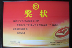 会议总结了2014年大学生保险责任行暑期活动取得的成果,部署了2015年的活动安排,向在2014年活动中表现突出的包括我校在内的22所院校颁发“大学生保险责任行示范院校”,并为在活动中作出重要贡献的单位进行颁奖。我校的风险管理与保险学社因为活动积极,贡献突出,并组织多次精彩的实地调研活动,被授予最佳调研奖。同时,中国保险行业协会与中国青年志愿者协会签署了合作备忘录,在成立组织、开展活动、工作机制等方面达成一致合作意见,为后续活动的开展和持续深入提供了必要的制度保障。