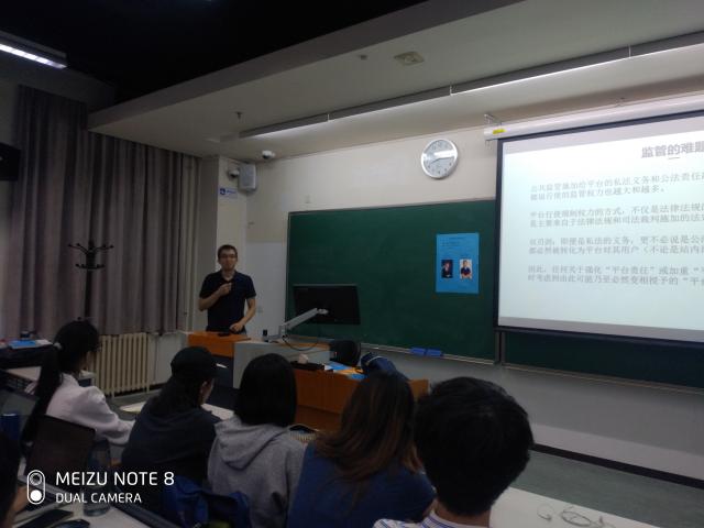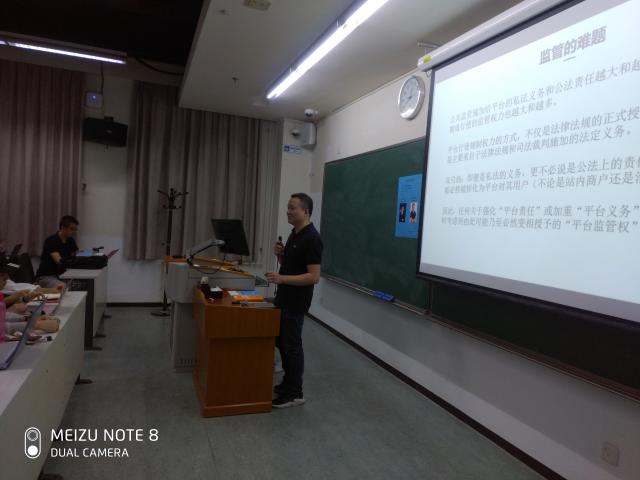 关于电商革命,凌斌老师从国际形势、潮流创造、传统模式的转变、电商化四个方面生动全面地为学生展现了电商革命的大背景,扩大了学生的视野,同时进一步加深了对电子商务的认识。在法律革命部分,凌斌老师结合自身的学术研究与法律实践,从法学的视角来分析当前电子商务的法律体系特征、电商商业模式所隐含的法律问题、以及电商法律体系的发展前景。凌斌老师指出,当前我国的电商法律体系是不完善的,其主要特点是双轨制,即电商法律体系中既有一部分是传统商业法律体系,也有一部分是新修订的电商的法律体系。这样的双轨制面临着不同法律体系互相抵牾冲突的问题,接着凌斌老师给出具体的法规条文为例,为学生们进行了详细的讲解。随后凌斌老师讲到了电子商务的商业模式,其与传统商业模式的不同是传统商业以物理店铺为核心,电子商务以网络平台为核心,这一差异导致电商法律的制订与传统经济法在监管、问权问责等方面有着很大不同,因此传统的法律体系在解释电商领域部分法律问题时会有一定的不足。同时由于电子商务“流量变现”的商业模式,更容易出现垄断、恶性竞争等问题,这些都需要从法律体系的制订出发,进行有效的规范和监管。最后,凌斌老师对电子商务法律体系的发展进行了展望,他指出,法律体系必须契合电子商务的商业模式与商事交易关系。随着电商革命的不断进行,电商市场的不断扩大,我国必定会出台更强力更规范的法律体系作为保障,来促进我国电子商务的良性发展。