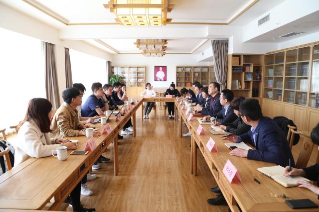 3月8日上午,校外导师刘岷对同学们的到来表示热烈欢迎,研究生宫博代表同学们感谢各位领导的亲切接待。公司人员为学生介绍了集团的发展历程,集团前身自1975年设立以来扎根山东、稳步发展,特别是2009年转企改制以来,集团综合实力、经营业绩和品牌影响力快速提升,营业收入从2008年2.51亿增长为2018年超过110亿,资产总额较改制前增长超20倍。随后,在集团传统文化推进中心,同学们观看了“敬天祈福”文化宣传片,深刻感受到山东绿地泉致力于为广大传统文化爱好者及社会各界创建一个交流、分享、共同成长的文化家园,在推动传统文化落地方面做出贡献。