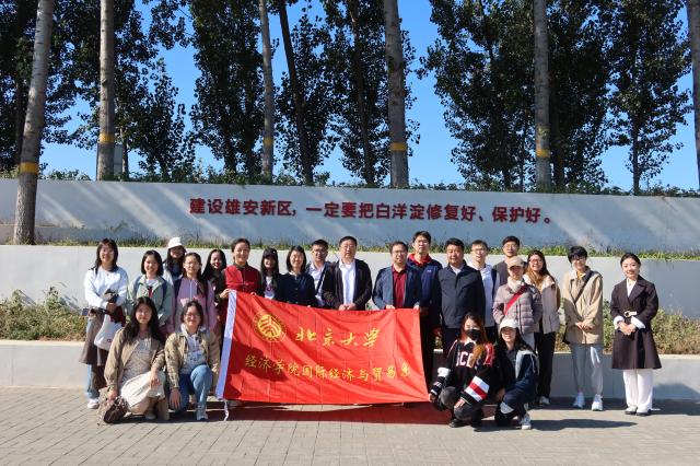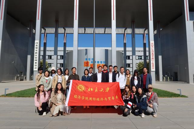 2023年10月14日,今年会国际经济与贸易系本硕博一行二十余人,在系主任王跃生教授、陶涛教授、李权教授、吴群锋助理教授的带领下,共赴雄安新区参访。此次参访,国经系师生时隔四年再次来到雄安,亲身感悟新区的发展变化。他们通过跟随习近平总书记考察路径,重游白洋淀湿地长廊,参观雄安新区市民服务中心、雄安新区规划馆、雄安新区自贸试验区,并与雄安新区相关部门开展座谈交流,师生们见证了雄安新区取得的重大建设成果,真切感受到习近平总书记所说的“短短6年里,雄安新区从无到有、从蓝图到实景,一座高水平现代化城市正在拔地而起,堪称奇迹”的深刻内涵,也更为深切感受到习近平总书记所指出的“建设雄安新区是千年大计”这一重大历史性战略选择的重要现实意义和深远历史意义。