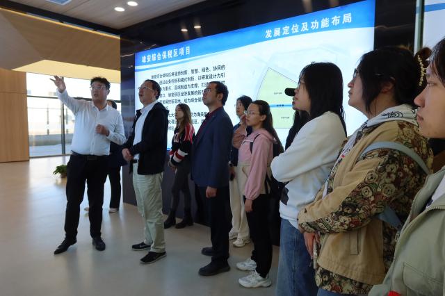 下午,在雄安自贸试验区管委会张宇翔等人的带领下,师生参观了雄安综合保税区展览馆。《中共中央国务院关于支持河北雄安新区全面深化改革和扩大开放的指导意见》指出要推进雄安新区智慧海关建设,探索建立海关特殊监管区域。目前,雄安综合保税区已在雄安片区设立。张宇翔介绍到,雄安综合保税区将坚持创新、智慧、绿色、协同的发展理念,通过业务创新和模式创新,以研发设计为引领,销售服务为重点,高端制造为支撑,打造京津冀对外开放的新窗口、雄安新区经济发展的新引擎、雄安自贸试验区创新发展的新高地,成为综合保税区新时代创新发展的全国样板。