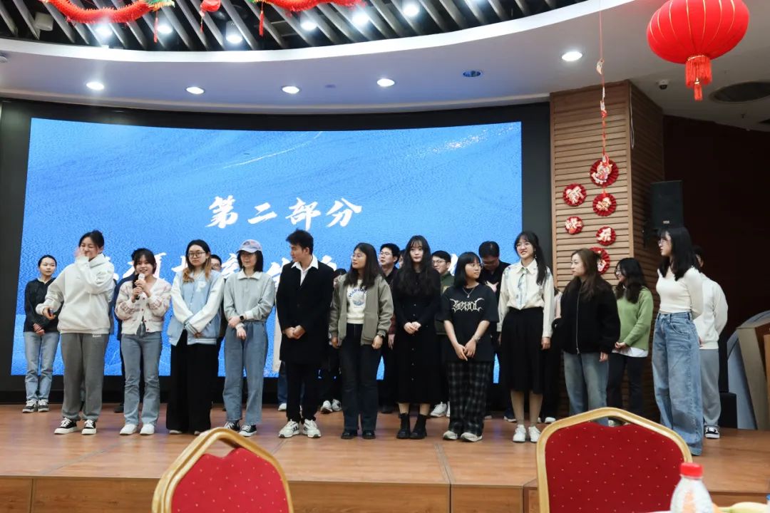 师生联欢会由2022级本科生滕玥和彭麟凯主持。2022级本科生屠婳演唱的《上春山》,复刻了春晚经典节目的精彩片段,为在场师生带来了融融春意;2021级本科生华姜楚楚带来的二胡演奏《山丹丹花开红艳艳》,悠扬的乐声浸润了在场师生的心灵;2022级本科生施彦如、陈诗尹、陈悦昀、刘凯羚共同为大家演唱《小手拉大手》,为大家送上了美好的祝福;车晓莹老师为大家带来歌曲《大海》,让全场师生仿佛置身于大海之滨,聆听海的声音;2020级本科生及2022级硕士生共同为大家带来歌曲《青春大概》和《稻香》,诉说着将与燕园作别的深情怀念与依依不舍;莫家伟老师带来歌曲《月半小夜曲》,经典的旋律和富有感染力的演唱引发全场师生的热烈掌声;王跃生老师为大家带来的小笑话则推动全场欢声如潮,让联欢会步入高潮;最后,师生共同合唱《燕园情》,重温“胸中黄河月”的情怀与“收拾山河待百年约”的豪迈,为联欢会画上了圆满的句号。