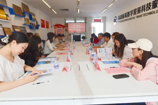 随后,实践团与前海数字贸易科技服务有限公司一线工作人员开展座谈。公司董事长李良指出,前海数贸是前海管理局下属专注于数字贸易产业综合服务的国家高新技术企业,聚焦帮助内地政府进行“跨境电商+产业带升级”、数字化升级转型,开展“跨境电商+产业带品牌出海”,合力打造要素齐全的数字贸易产业生态。在交流环节,师生就全国自贸片区创新联盟、前海数贸集团产业园区、海外服务中心运营和国际供应链、公司治理、就业等相关问题展开了热烈讨论。此次交流为师生在国际经济与贸易领域的发现探索与研究提供了新的素材和案例,增进了师生对前海作为大湾区核心创新区域的理解,对未来中国开放型经济的发展路径有了更深刻的认识;此次交流不仅为学术研究提供了丰富的实践素材,也为未来更多的跨学科合作与交流搭建了桥梁,师生们对当前时代趋势和国际格局下深圳、前海与商品贸易数字化的相生关系有了更加生动的认知。