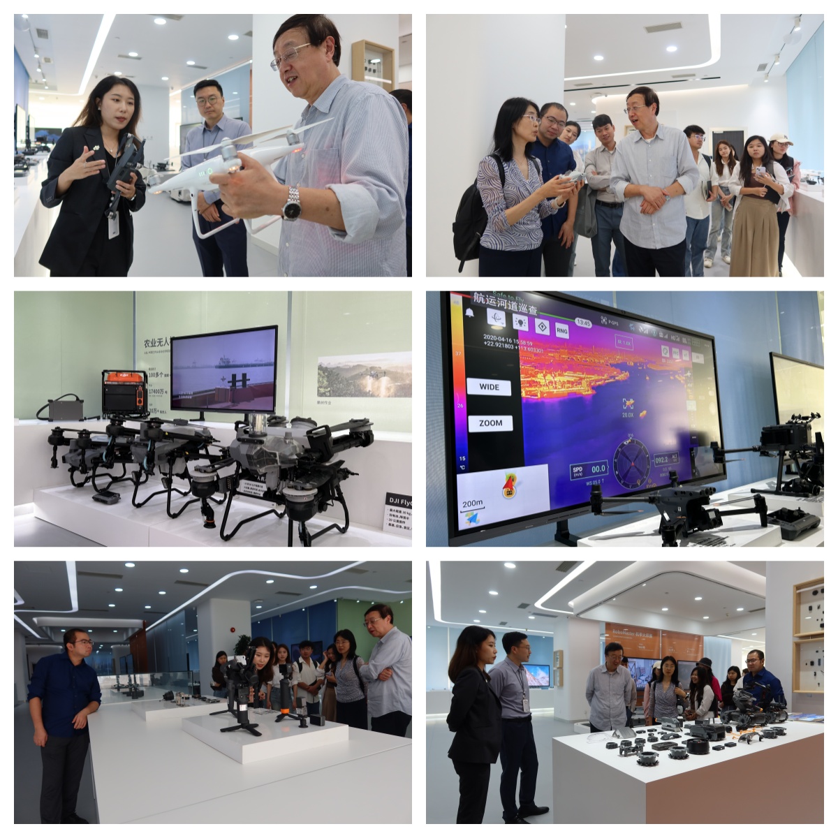 实践团在参观大疆创新科技有限公司的过程中,工作人员详细介绍了公司在消费无人机、行业无人机、农业无人机等领域的应用场景和产品如何助力各行各业的发展,同时展示了产品的迭代更新。此外,工作人员还介绍了大疆在农业领域推出的专业农业无人机系列,其用于大田、果树、水产、牧场等场景,通过全自动喷洒、播种等智能化技术,大疆无人机为农业带来了智慧化和现代化解决方案,成为推动农业转型的重要力量。师生们就大疆技术创新、无人机飞行高度、电池续航能力、教育项目等相关问题与工作人员探讨交流,了解到大疆不仅在无人机领域持续创新,还积极拓展教育领域,推出科创课程和实践竞赛等项目,致力于培养社会的科技创新人才。师生们还亲身体验了大疆的实物产品。