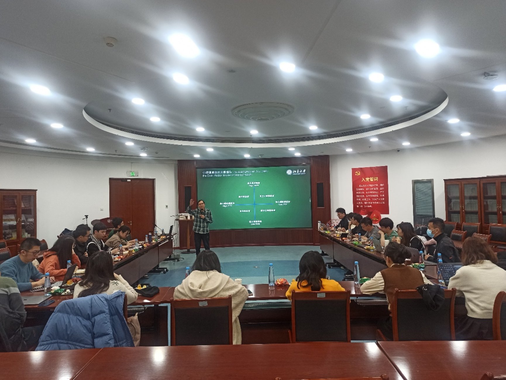 会议伊始,庄明科围绕着焦点咨询技术向与会老师、辅导员们展开介绍,并带领大家就最近生活中的亮点——“愉快、得意的一件事”、“印象深刻的赞美”、“学习的期望”以及“生活满意度”等四个方面开展了讨论。庄明科表示,回忆与分享“生活的亮点”有利于激发一个人的内在动力,而对生活满意度进行打分这一环节则有利于辅导员们形成“刻度化思维”,这一思维可以更好的帮助我们与学生谈心谈话、发掘学生潜力和动力。