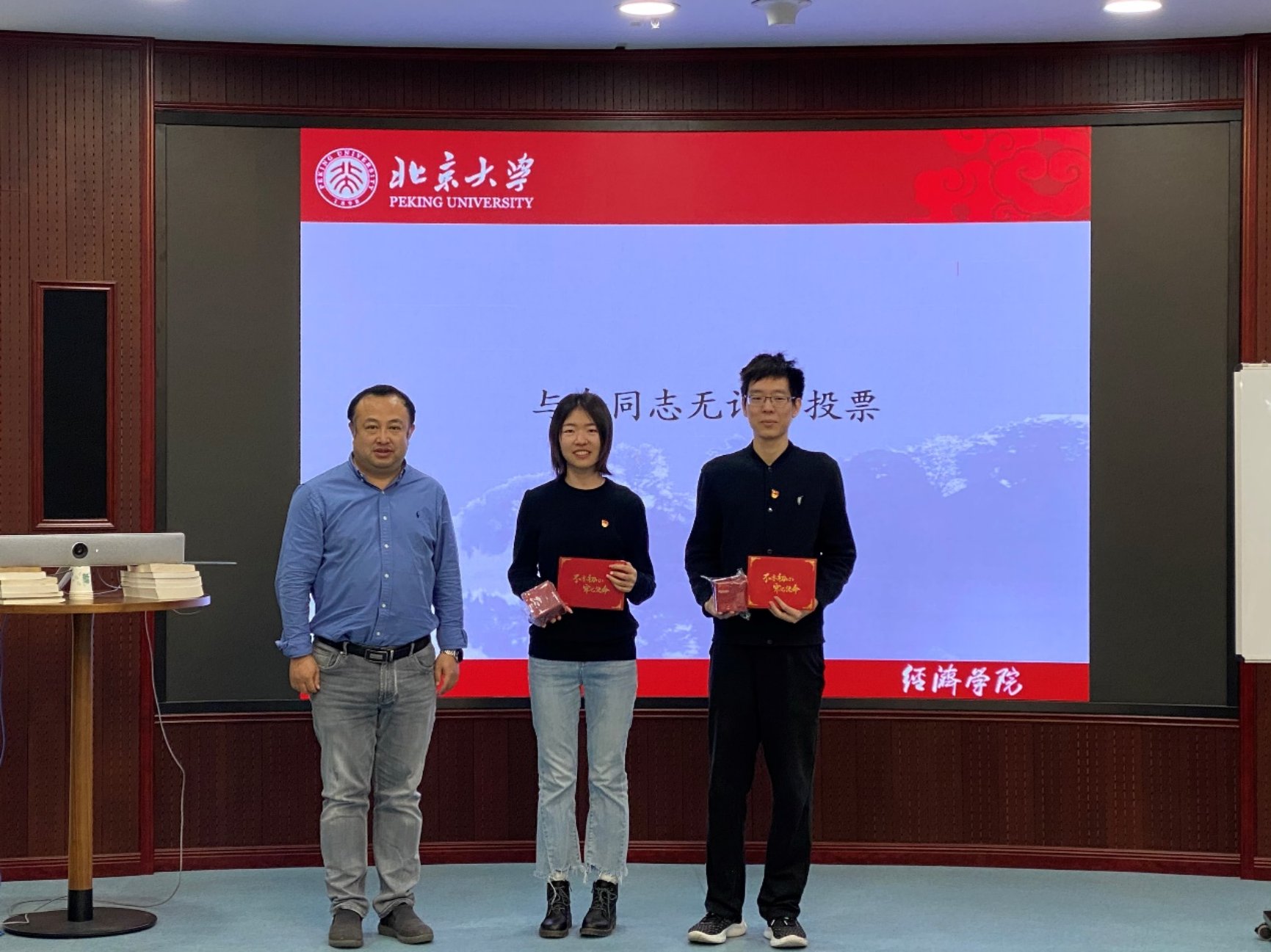 首先,会议对2020级博士生吕泽众发展为中共预备党员的申请进行了讨论和表决。吕泽众对自己在考察期间的思想演变及学习工作情况进行了详细汇报,支部大会进行了讨论和无记名表决,全票通过了吕泽众同志的入党申请,正式接收其为预备党员。张亚光为新发展党员佩戴党徽,庆祝政治生日,以此激励全体同学不忘入党初心、牢记党员使命,以实际行动践行对党组织的庄严承诺。