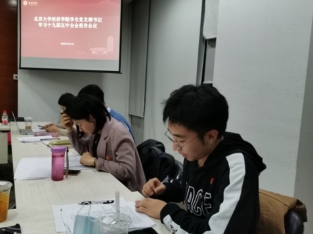会议伊始,刘雪莹带领学生党支部书记研读了十九届五中全会报告全文。接下来,四位党支书代表就报告学习内容依次分享了学习体会。