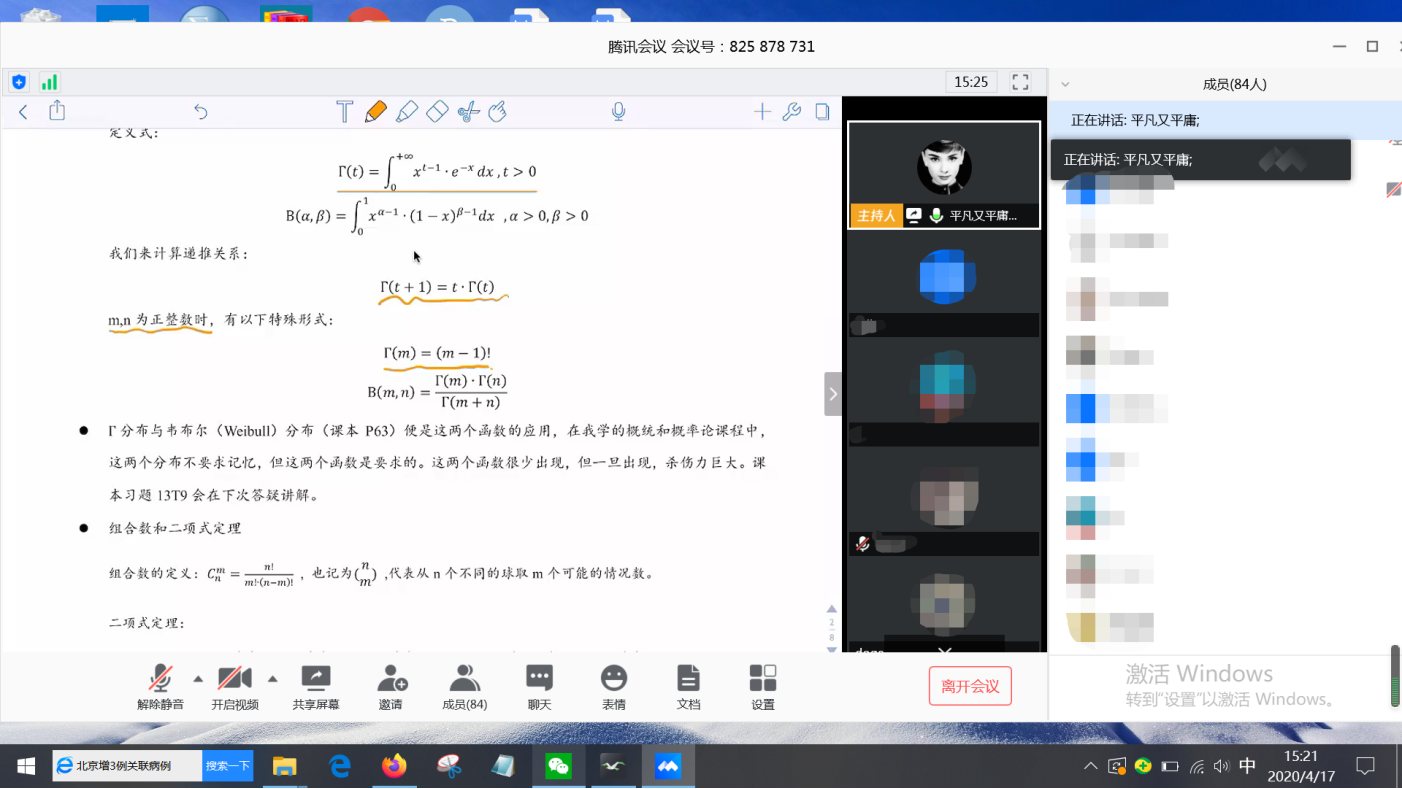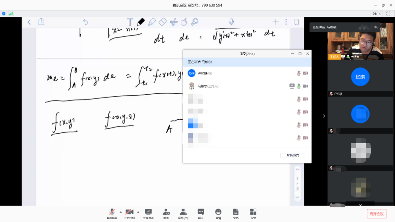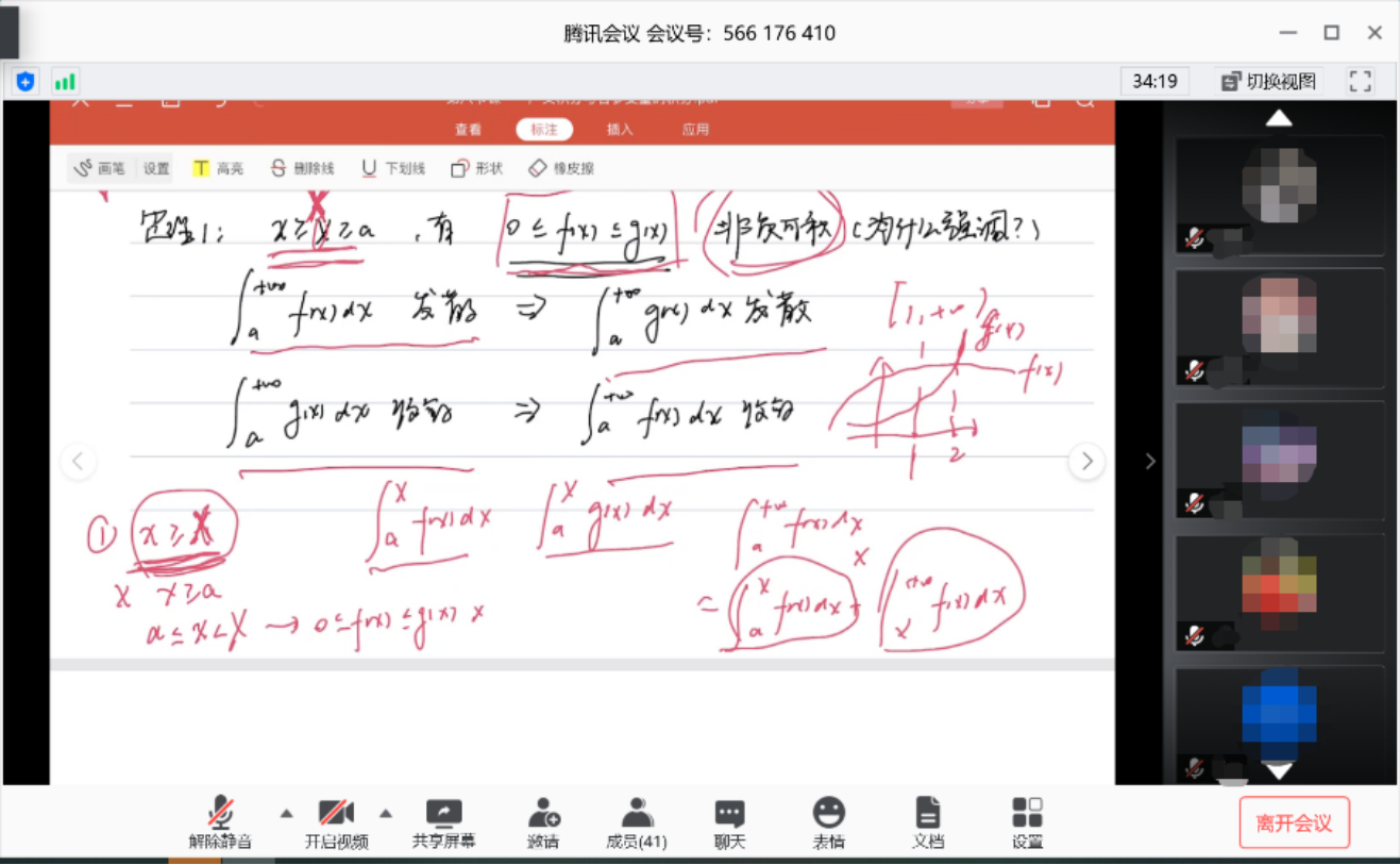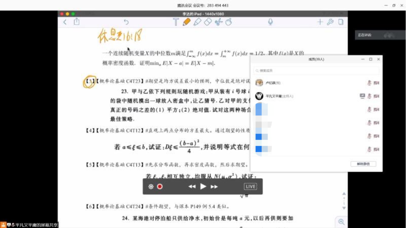 同时,辅导微信群还会在每周固定时间举办线上一对多公开辅导活动。截止6月26日,已进行高等数学一对多辅导13次,线性代数一对多4次,概率统计一对多辅导6次,辅导时长47小时,辅导人次逾670。一对多辅导通过腾讯会议进行,辅导志愿者们通过共享屏幕直播授课,为同学们重新梳理了三个月以来各门数学课程的知识脉络,细致讲解了容易被初学者混淆的概念定义与变量关系,分享了自己的解题技巧和心得经验,并为同学们提供了一些典型性与引导性较强的好题与具有相当挑战性的难题。辅导结束后,辅导志愿者们为同学们详细解答了其疑难困惑,并将辅导讲义发到对应辅导群中,方便因课程时间冲突未能参加辅导的同学们浏览学习。线上一对多辅导的形式和认真热心的辅导志愿者们受到了同学们的一致称赞。