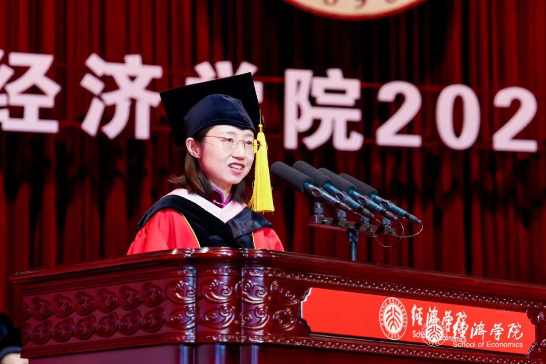 2023届本科毕业生代表金楚楚、董晨晖、梁铠彤、索朗多杰,以《出发,是为了更好地归来》为题,回忆了经院学子在燕园丰富多彩又充满无限可能的生活。