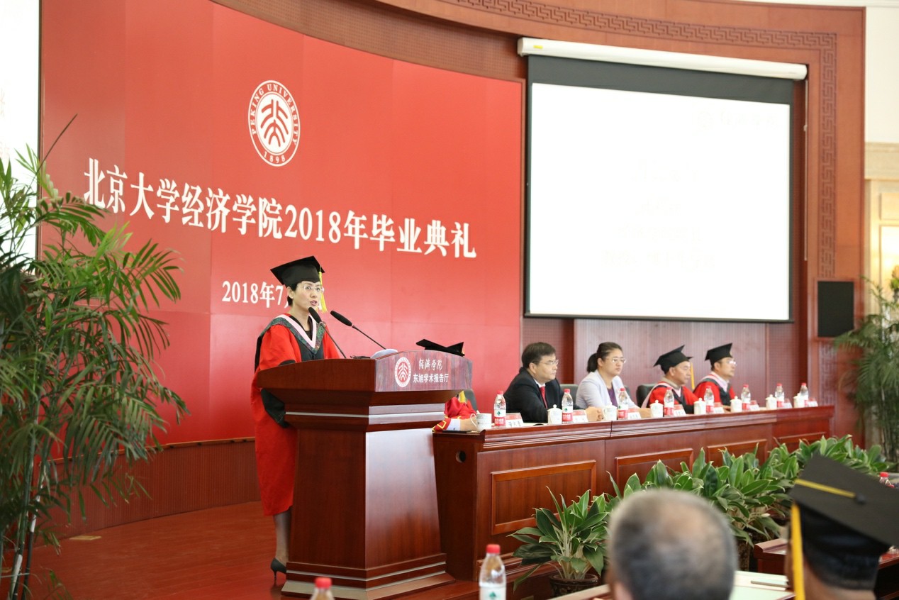 孙祁祥院长以“精神”为题致辞。她用亲身经历的五个小故事,生动地给毕业生们讲述了五种可贵的精神:铁人精神、契约精神、工匠精神、奉献精神和主人翁精。依依惜别之际,她祝愿毕业生们在未来的人生道路上,都能够继续以独立、质疑、求新的态度探寻真理、获取真知,同时,以北大人从我做起的自立,以“五种精神”来塑造人格、完善自我、服务社会、报效祖国。