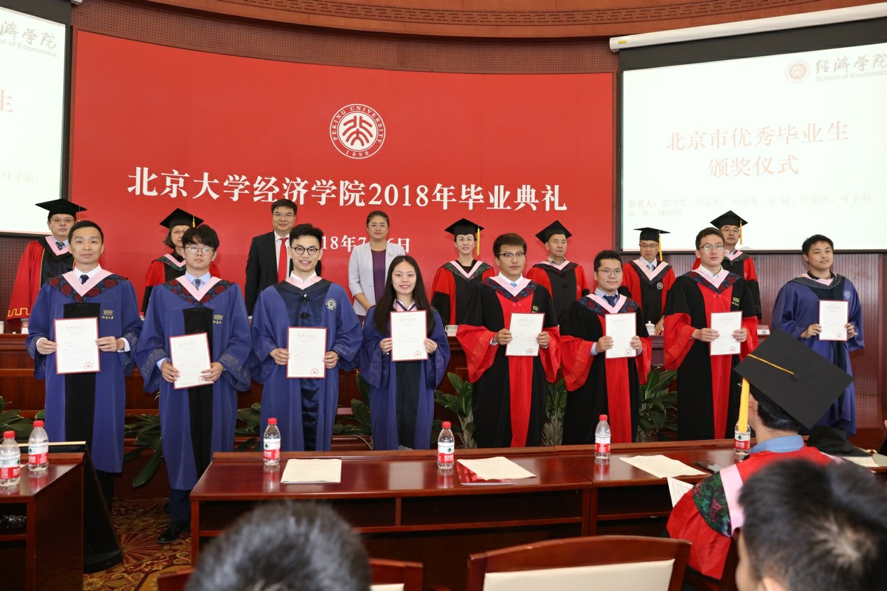 典礼上为“百年菁才奖”、“陈岱孙杯创新人才奖”获奖者和“北京市普通高等学校优秀毕业生”颁奖。陈思宇、邓尚律、段志明、冯文君、唐琦、余航、周凌云等7名在学术上求真务实、取得出色科研成果的同学获得了“百年菁才奖”、“陈岱孙杯创新人才奖”;谌泽昊、段志明、何西龙、王镝、许茹纯、叶子萌、章森、钟泽铭等8名同学脚踏实地、全面发展,展现出新时代青年经济学子风采,获得了“北京市普通高等学校优秀毕业生”称号。