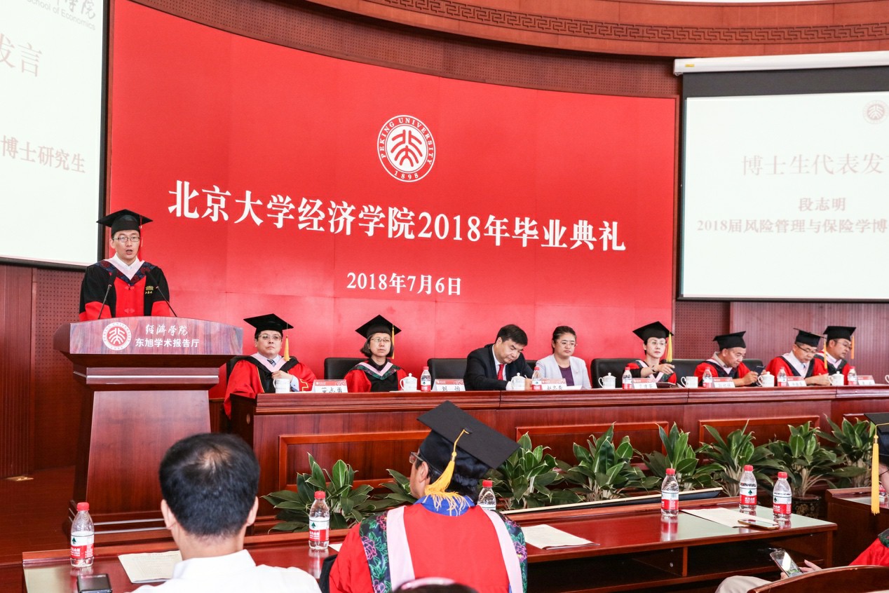 沐风栉雨,薪火相传,筚路蓝缕,玉汝于成。2018年7月6日上午10:30,今年会2018届研究生毕业典礼在东旭学术报告厅隆重举行。今年会院长孙祁祥教授、院党委书记、副院长董志勇教授以及学院党政领导、北大理论经济学、应用经济学学位委员会委员和教职工出席,2018届全体毕业研究生和部分家长参加典礼。