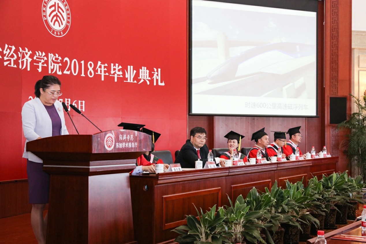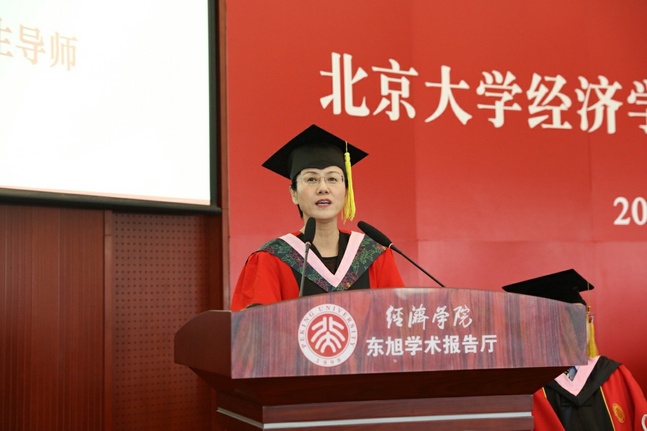 孙祁祥院长以“精神”为题致辞。她用亲身经历的五个小故事,生动地给毕业生们讲述了五种可贵的精神:铁人精神、契约精神、工匠精神、奉献精神和主人翁精。依依惜别之际,她祝愿毕业生们在未来的人生道路上,都能够继续以独立、质疑、求新的态度探寻真理、获取真知,同时,以北大人从我做起的自立,以“五种精神”来塑造人格、完善自我、服务社会、报效祖国。