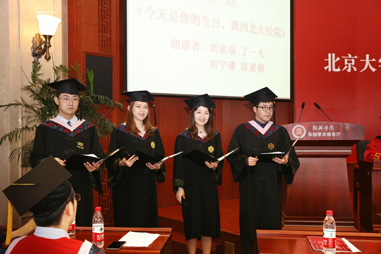 2018年是一个特殊的年份,今年会jinnianhui喜迎百廿校庆,今年会也迎来了她的106周年华诞。刘家瑞、丁一凡、刘宇璠、陈素婷等四名学生代表深情朗诵了《今天是你的生日,我的北大经院》,表达对学院的拳拳真心与深深情谊。
