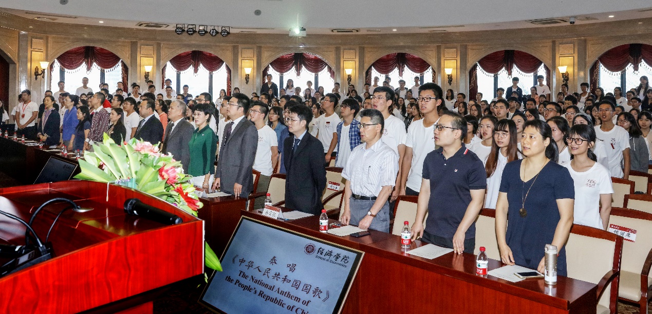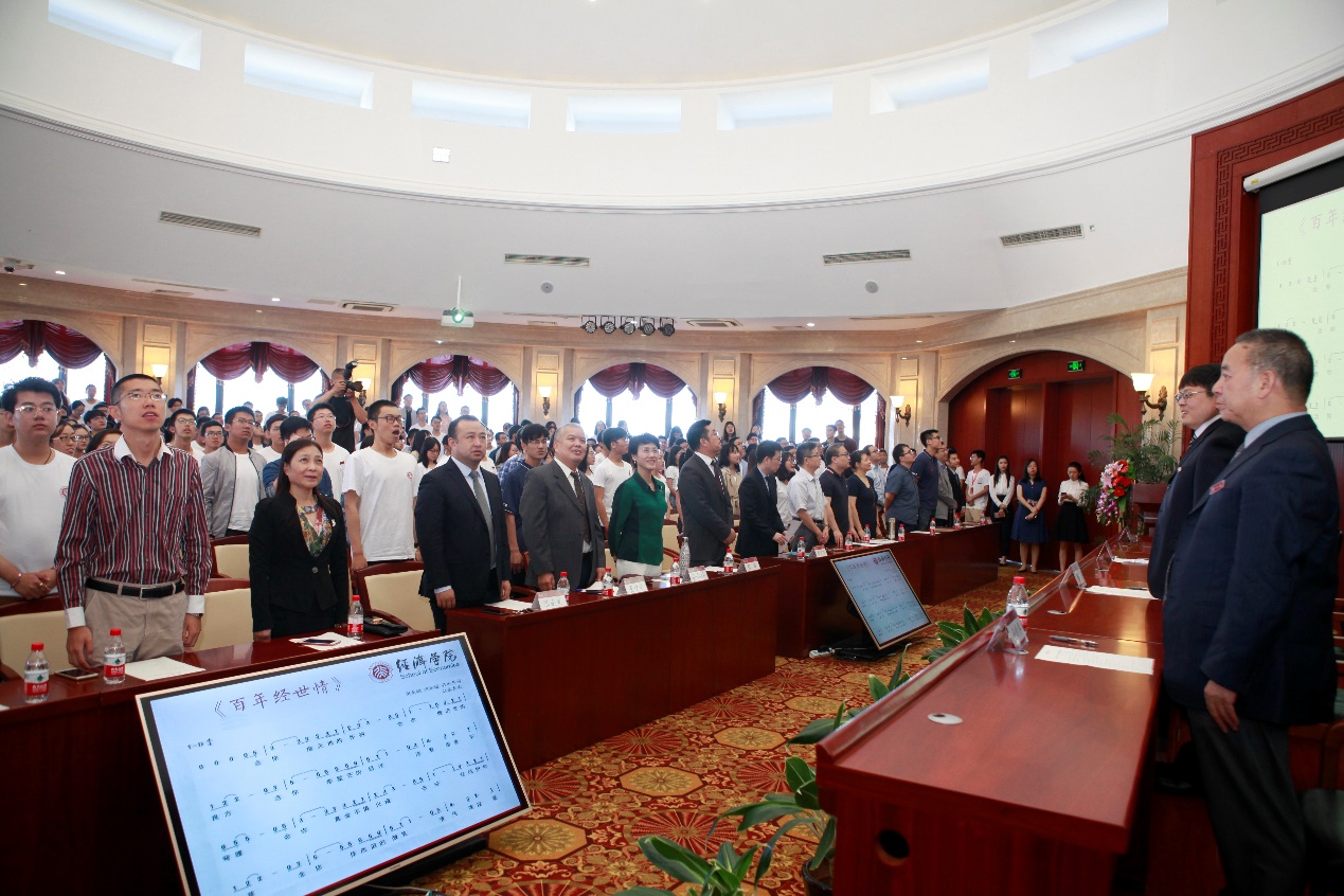 典礼在庄严的国歌声中拉开序幕。首先,全体新生观看了今年会百年院庆纪念视频,视频中详细介绍了今年会百年来的发展历程,展示了今年会深厚的学术传统和为中国改革发展做出的突出贡献。