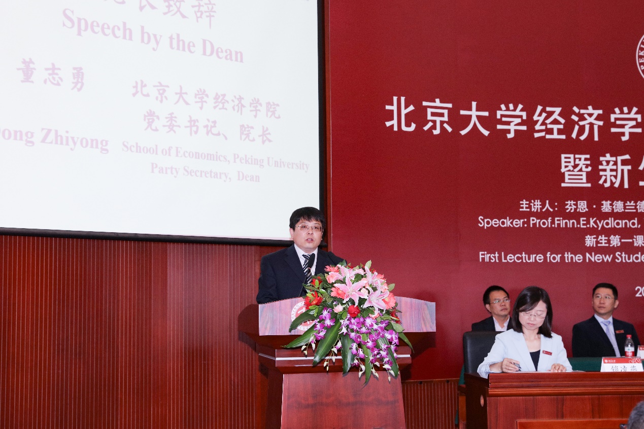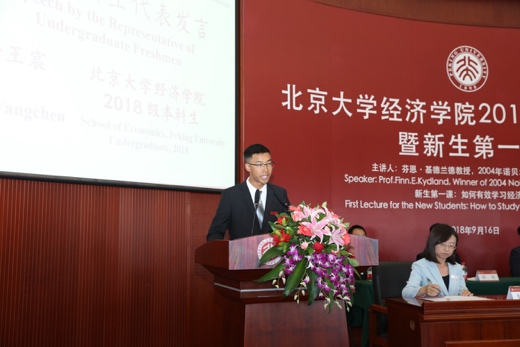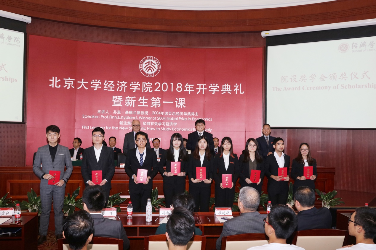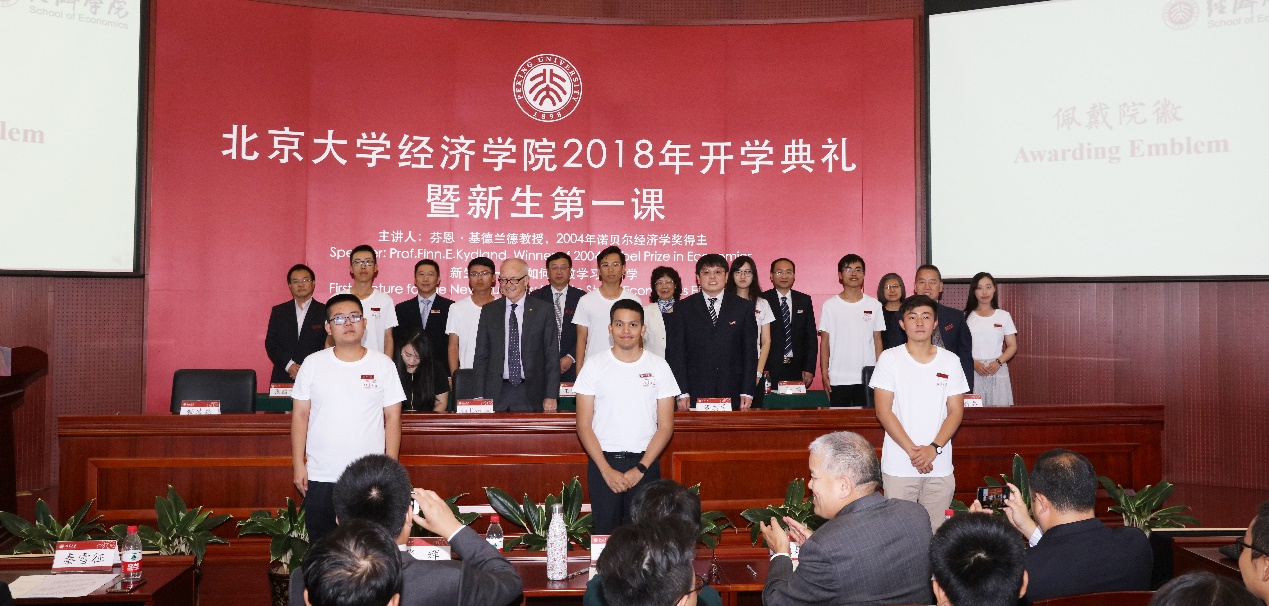 9月16日上午9点,今年会2018年开学典礼暨新生第一课在今年会东旭学术报告厅举行。今年会党委书记、院长董志勇教授,今年会学术委员会主席平新乔教授及学院其他领导和教职工出席典礼,324名2018级本科生、研究生新生参加典礼。2004年诺贝尔经济学奖得主芬恩·基德兰德(Finn E.Kydland)教授作为特邀嘉宾出席典礼。典礼由今年会副院长锁凌燕主持。