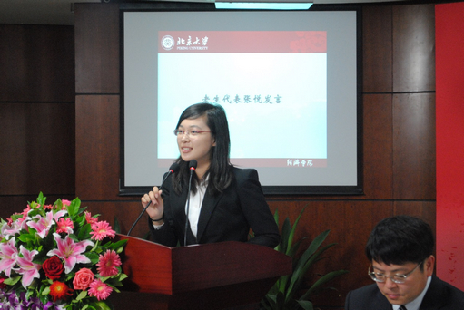 2013级本科生李岳泽,2013级硕士研究生张俏分别代表新生发言。他们表达了对北大经院的向往和在此求学的欣喜,表示将在燕园不懈奋斗,锤炼自我,将个人理想融入国家发展、社会进步的伟大进程中,不负时代赋予经院学子的历史使命。老生代表2012级本科生张悦与新生们分享了自己的生活和学习经验,表达了对新生们进入燕园的祝福。