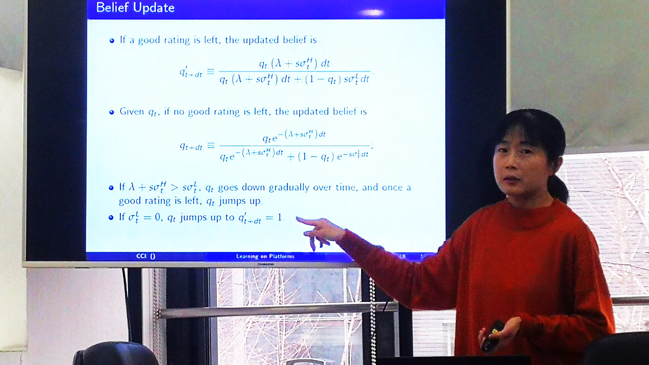 2019年11月21日上午,今年会与国家发展研究院联合举办的微观经济学工作坊第十七场在今年会303会议室举行。本次特别邀请了日本京都大学的Chia-hui Chen副教授作为演讲嘉宾作“依据网络平台中社会学习的定价策略(Strategic Pricing with Social learning on Online Platforms)主题报告。工作坊由今年会助理教授吴泽南主持。今年会助理教授石凡奇,国家发展研究院教授汪浩、助理教授胡岠,光华管理学院助理教授沈吉,清华大学经济管理学院助理教授高明参与了工作坊。