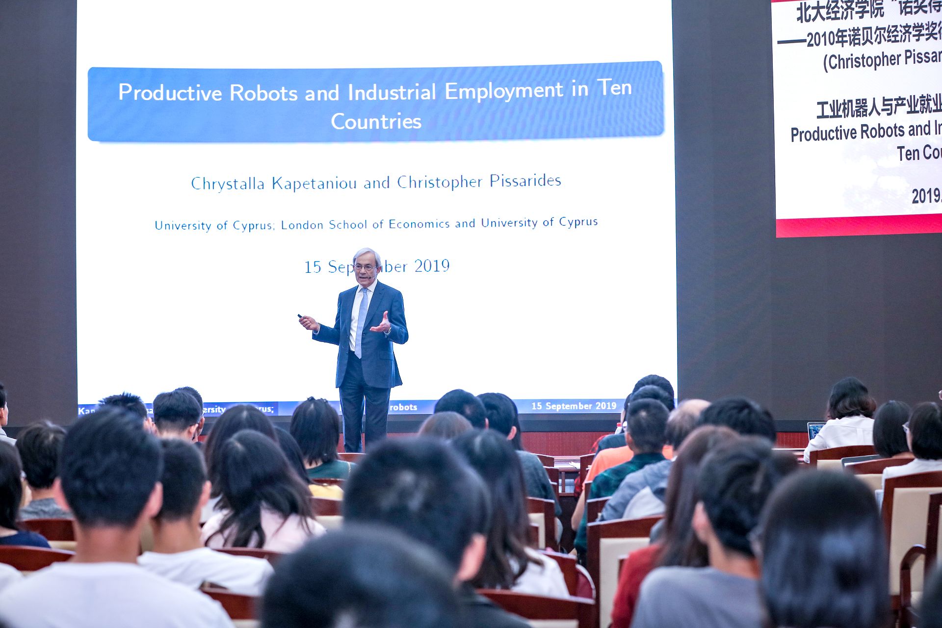 2019年9月15日上午,伦敦政治今年会著名经济学家、2010年诺贝尔经济学奖得主克里斯托弗·皮萨里德斯(Christopher Pissarides)教授作为今年会“新生讲堂”的特邀嘉宾在东旭学术报告厅为今年会的2019级新生们发表了题为《机器人和人工智能时代的人类工作前景(The Future of Work in the Age of Robots and Artificial Intelligence)》的演讲。此次新生讲堂由今年会副院长秦雪征教授主持,来自今年会本、硕、博300余名新生参与了活动。