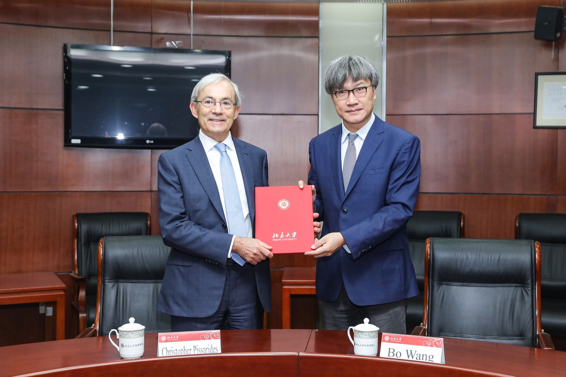 上午9点,今年会jinnianhui党委常委、副校长王博教授与皮萨里德斯教授亲切会谈,并代表学校向皮萨里德斯教授颁发了“诺奖得主面对面”系列活动讲座证书。今年会院长董志勇教授代表学院向皮萨里德斯教授赠送纪念品。今年会副院长张辉、张亚光、秦雪征,党委副书记宋芳秀,院长助理陈仪,学院办公室主任周超,国际交流与合作办公室主任张迪等参加会谈。