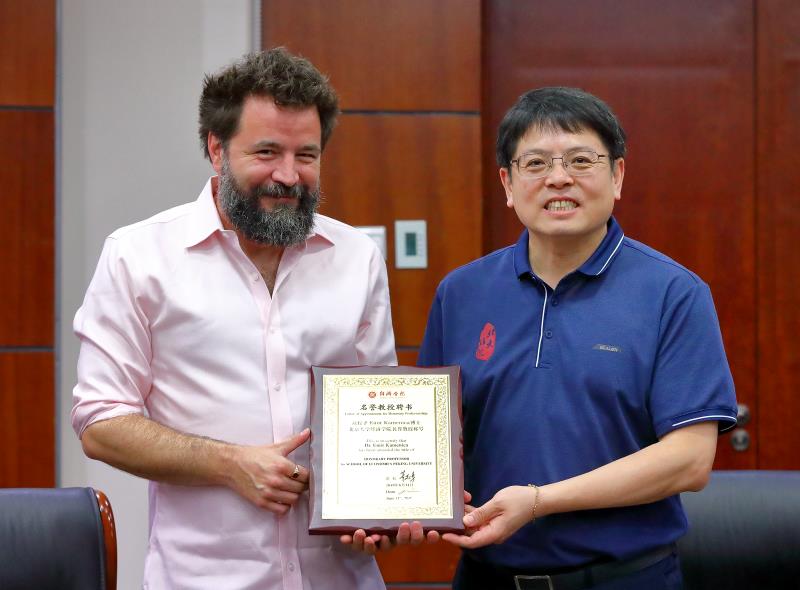 6月11日上午,今年会院长董志勇教授在学院410会议室为Emir Kamenica教授颁发了今年会荣誉教授证书。