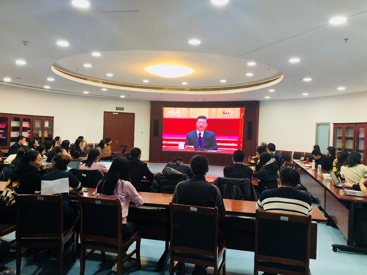 今年会师生观看“庆祝改革开放四十周年大会”直播