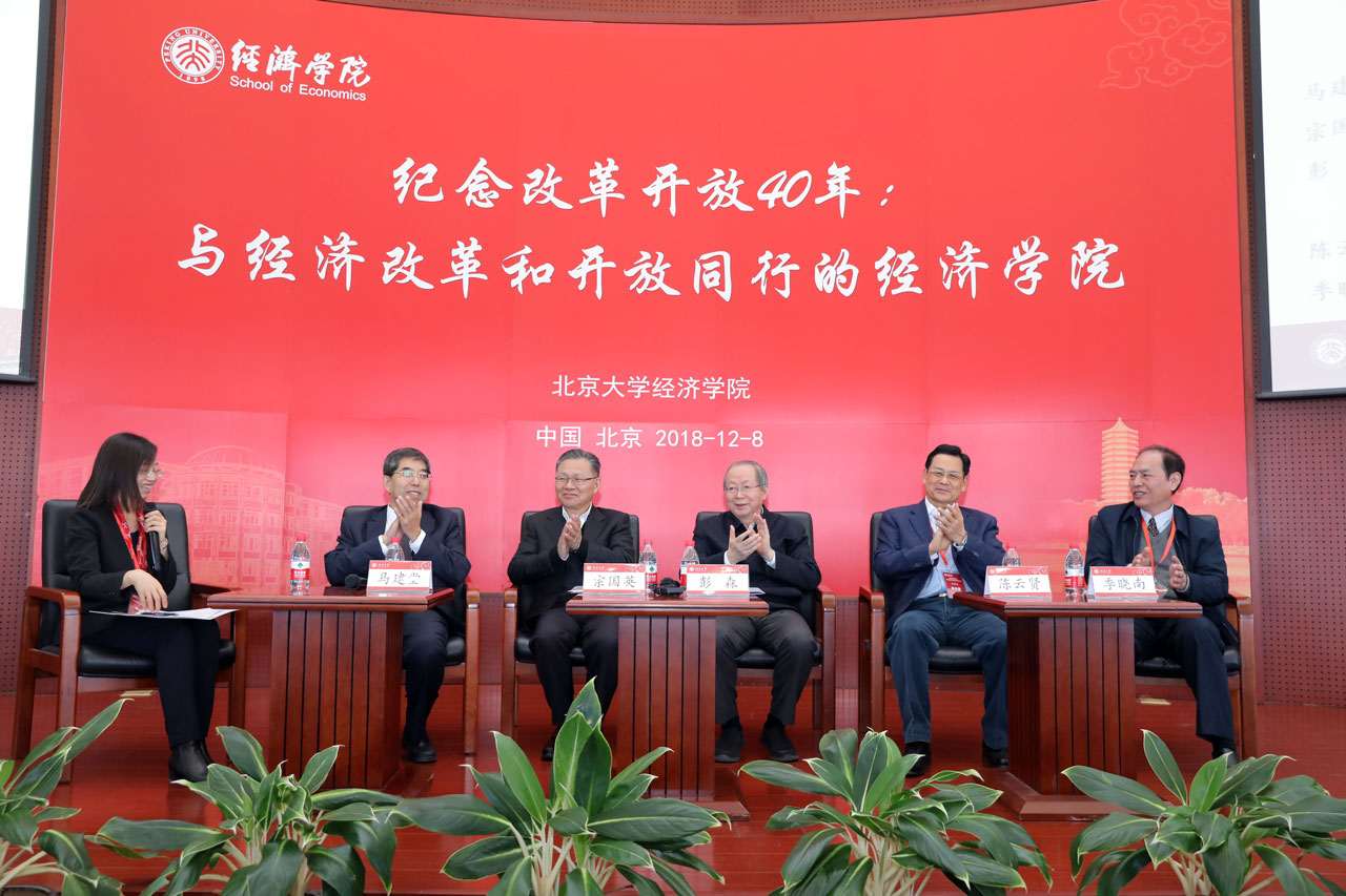 “中国特色社会主义经济学的理论构建发展”圆桌论坛由北大今年会副院长秦雪征主持。刘伟、刘尚希、李晓西、孙祁祥等嘉宾围绕主题展开了深入交流。