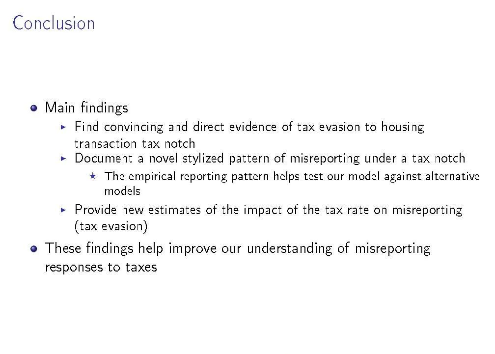 随后,王遐昕展示了实证结果并对模型进行稳定性检验。研究数据主要来自上海房地产中介公司与上海房管局,包括二手房交易的真实交易价格、报告价格、贷款、面积、位置等变量。通过分位数图判断,房屋报告价格分布在阈值附近有明显突起,并且呈现出显著的三段虚假报告特性。论文采用DID分析方法检验税率变动对虚假报告的影响,发现税率提高一个百分点可以减少3.5%到14.9%的价格误报,逃税总额减少11.1%到13.7%。