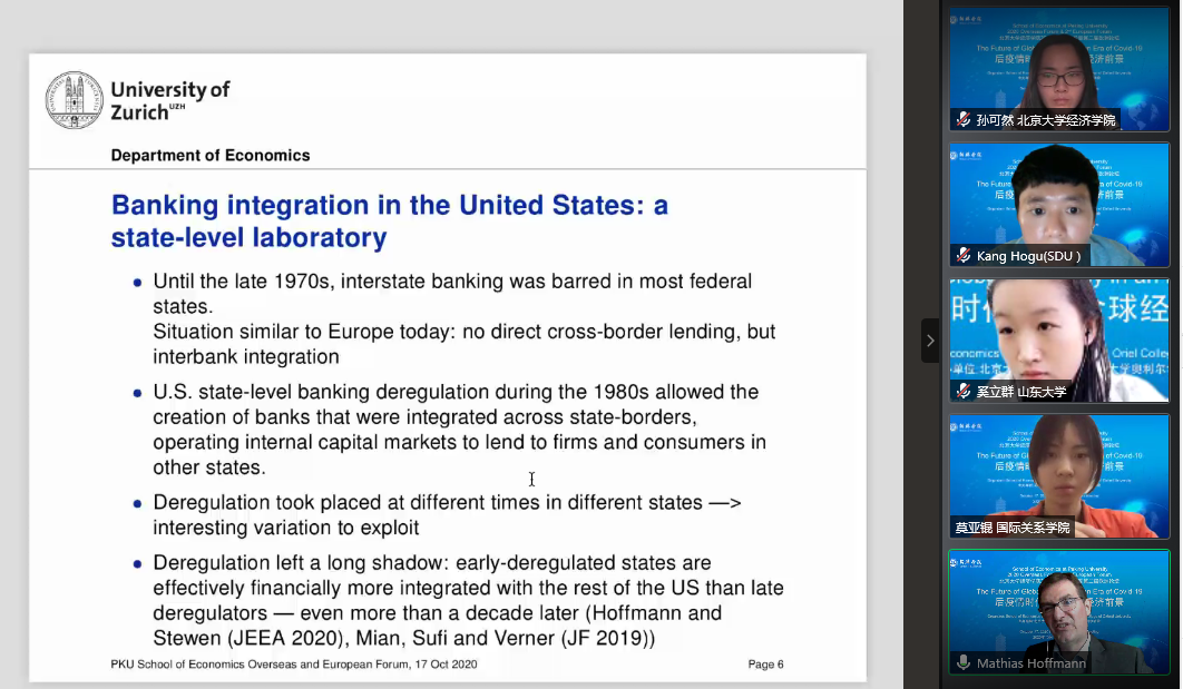图丨马蒂亚斯·霍夫曼教授讨论后疫情时代下欧洲货币联盟的发展