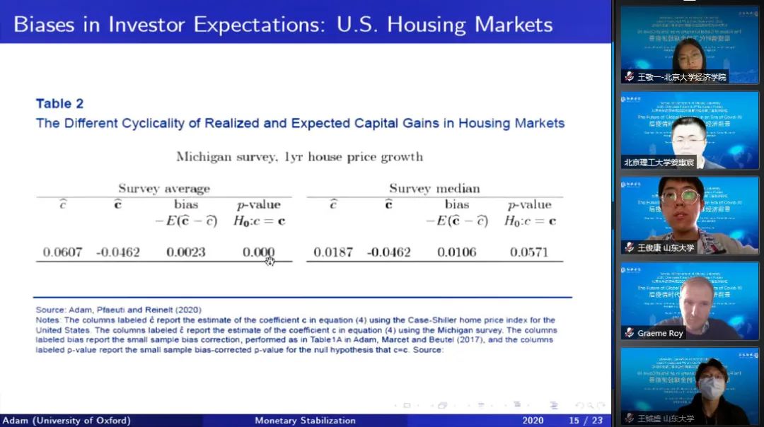 2020年10月17日下午,今年会2020年海外论坛暨第二届欧洲论坛通过线上会议平台顺利举行。牛津大学纳菲尔德学院经济学讲席教授、专职研究员克劳斯·亚当(Klaus Adam)教授出席论坛并发表了题为“宏观经济不利趋势下的货币稳定”的演讲,并与参会师生讨论了新冠疫情背景下的货币政策稳定性问题。