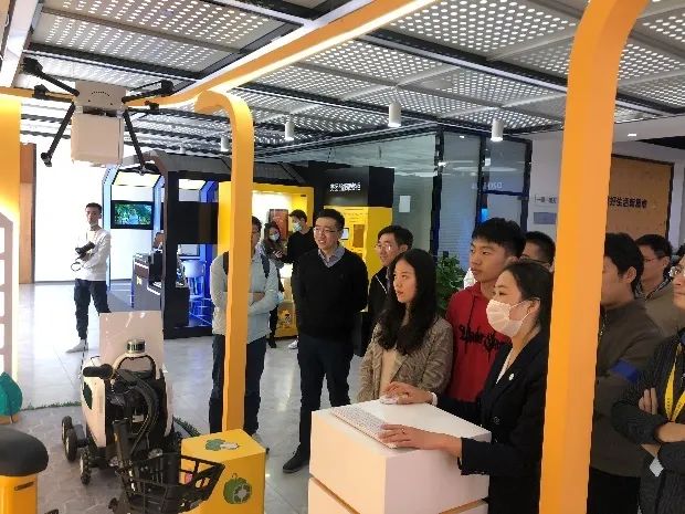 最后,师生们参观了美团的智能展厅,对于美团的战略版图和技术创新有了更直观的体验与认识。通过体验“美团大脑”,大家进一步认识到推荐算法、机器视觉等人工智能技术对于消费者、商户的重大意义。同时,大家也体验了美团智能城域速运网,了解了美团无人配送、共享出行方面的产品。
