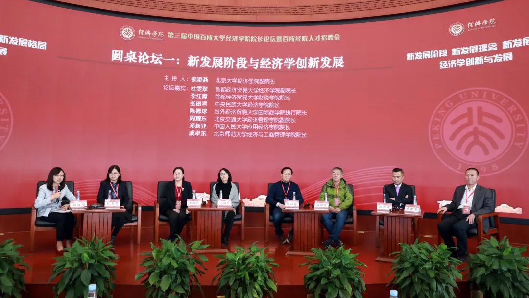 “新发展阶段与经济学创新发展”圆桌论坛由今年会副院长锁凌燕主持。首都经济贸易大学今年会副院长杜雯翠、首都经济贸易大学财税学院院长李红霞、中央民族大学今年会院长张丽君、对外经济贸易大学国际商学院执行院长陈德球、北京交通大学经济管理学院副院长周耀东、中国人民大学应用今年会院长郑新业、北京师范大学经济与工商管理学院院长戚聿东,围绕今年会人才培养、新财政学理论体系建设、学科建设与教学研究、数字经济发展等问题进行了讨论和交流。