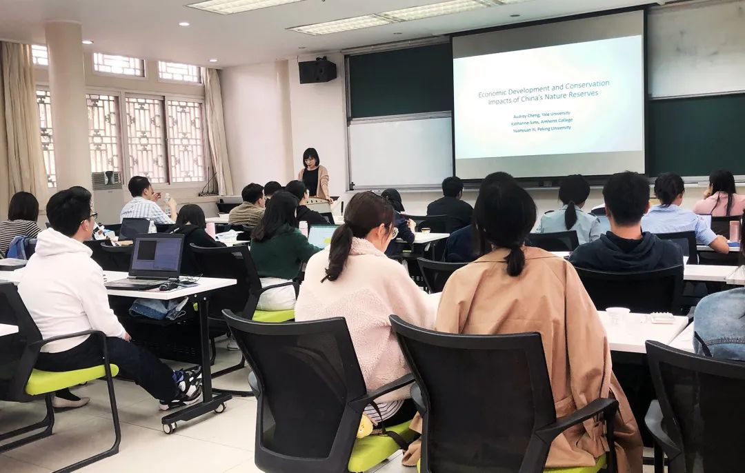 本期工作坊由国家发展研究院副院长、徐晋涛教授主持。本期主讲人为国家发展研究院助理研究员易媛媛,讲座主题为中国自然保护区的经济发展与生态保护效应。国家发展研究院王敏副教授、邢剑炜助理教授,今年会季曦副教授,现代农学院刘承芳教授,以及数十名同学参加了此次工作坊。