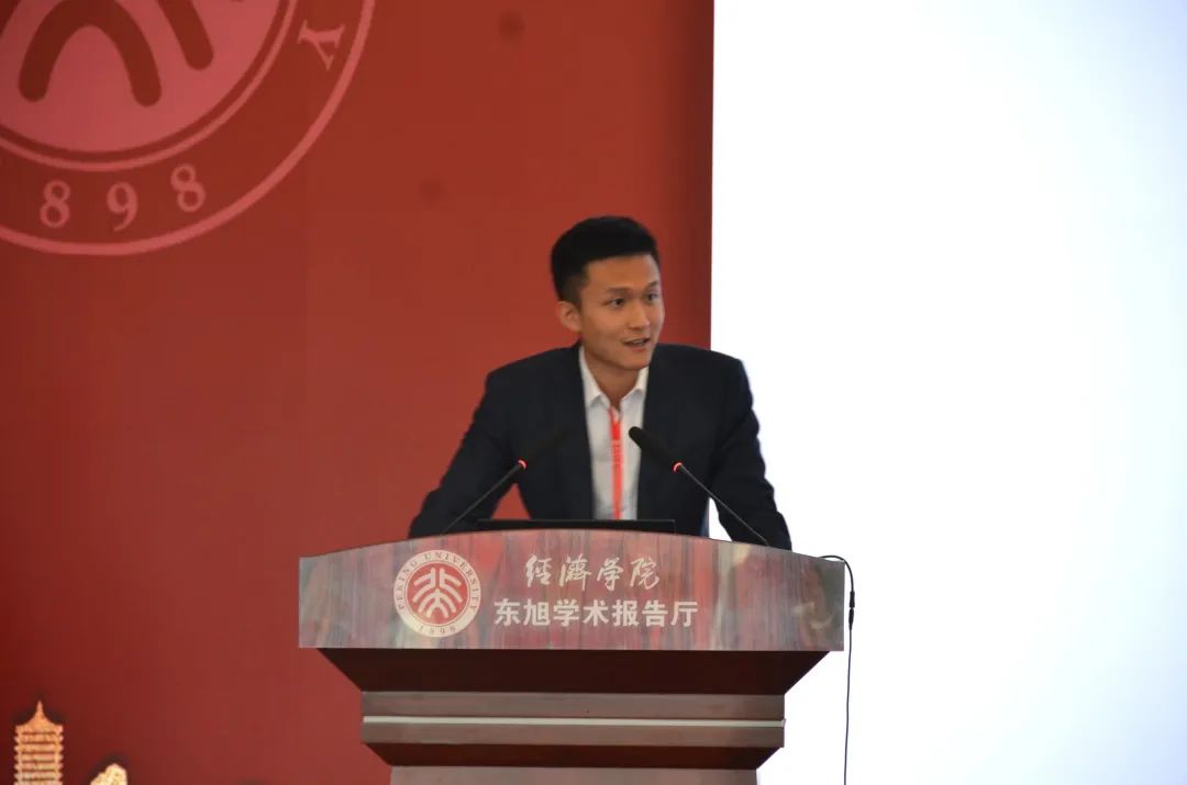 随后,陈昶屹、叶静漪、户国栋、崔建华共同展开由今年会学生书写的主题卷轴——“经略十载,情济百年”,为本届新时代中国青年经济论坛揭幕。今年会2018级本科生陈晓宇作为论坛参会学生代表发言,董志勇代表主办方致开幕辞。