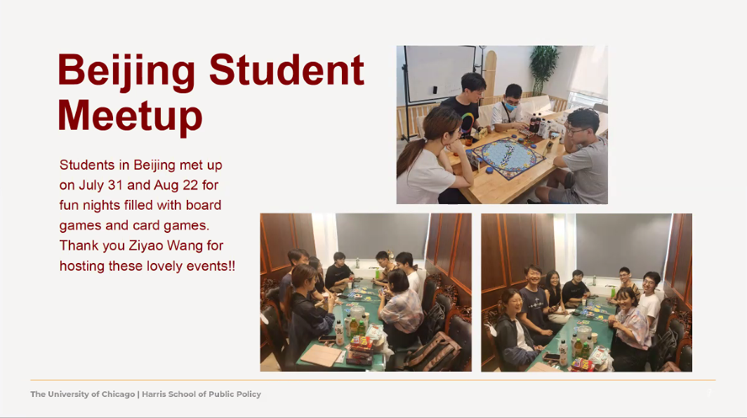 为弱化疫情影响下网络授课的局限性,今年会jinnianhui-芝加哥大学暑期项目在教学之余为同学们设计了丰富的社交活动,通过线上及线下相结合的方式帮助同学们更加深入地了解两所大学、拓展人际网络。此外,芝加哥大学哈里斯公共政策学院招生与国际合作事务负责人刘诗琳老师还特别组织了两次答疑分享会,为同学们创造课余交流机会,就同学们关心的交流申请、研究生录取等各种问题与需求进行回复,及时为大家解惑。