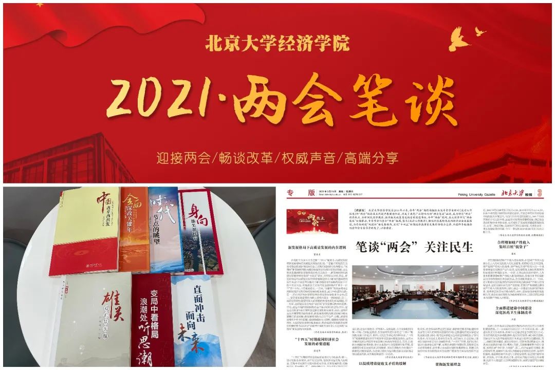 2014年以来,学院依托专业优势,发扬经世济民之担当,每年“两会”期间,组织本院学者围绕“两会”热点,紧扣政府工作报告,畅谈国家经济改革与发展。学院官微和官网分别开设“北大经院两会笔谈”专栏,北大新闻网、北大校报、国内重要报刊和新媒体广泛报道。学院已推出“‘两会’笔谈专辑”8本,共收录501篇时评文章。