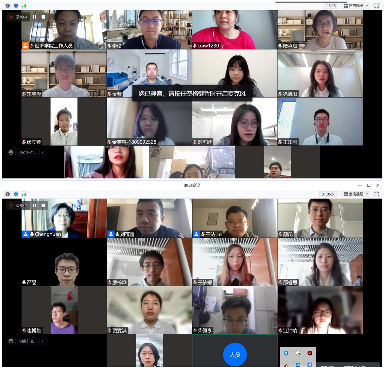 2022年5月13日上午,7个答辩分会场同步在腾讯会议平台进行。同学们精心准备论文汇报,认真介绍和阐述本人毕业论文的选题背景、研究思路、问题与结论、创新性和局限性等。答辩委员们仔细听取同学们的汇报,并从不同角度提出问题与同学讨论,同时给出针对性较强的论文改进建议。