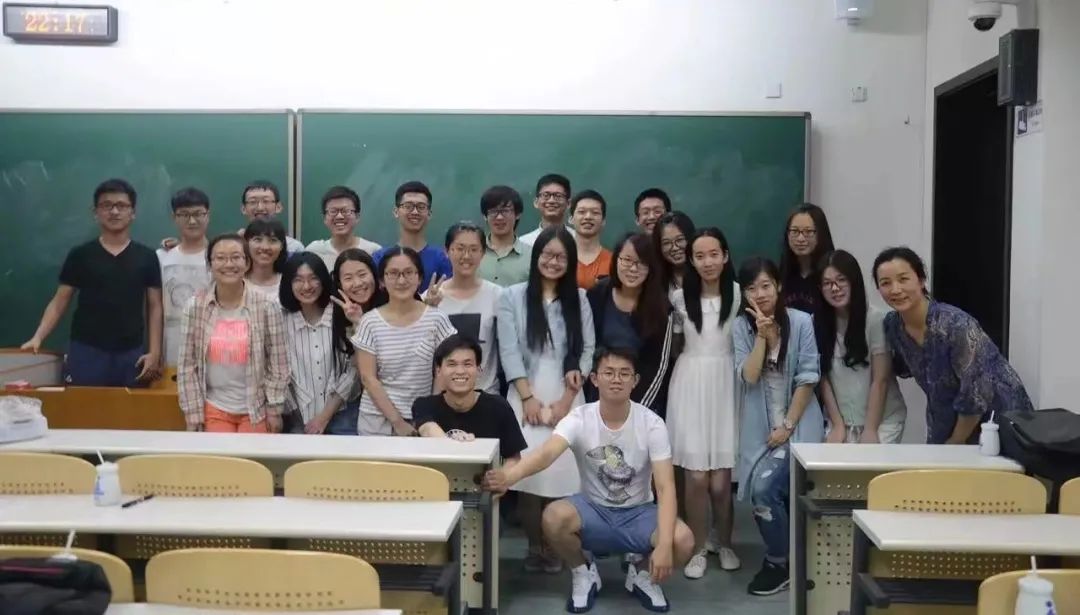 毕悦所在2015级2班的班会合影,第一排右一为李权老师